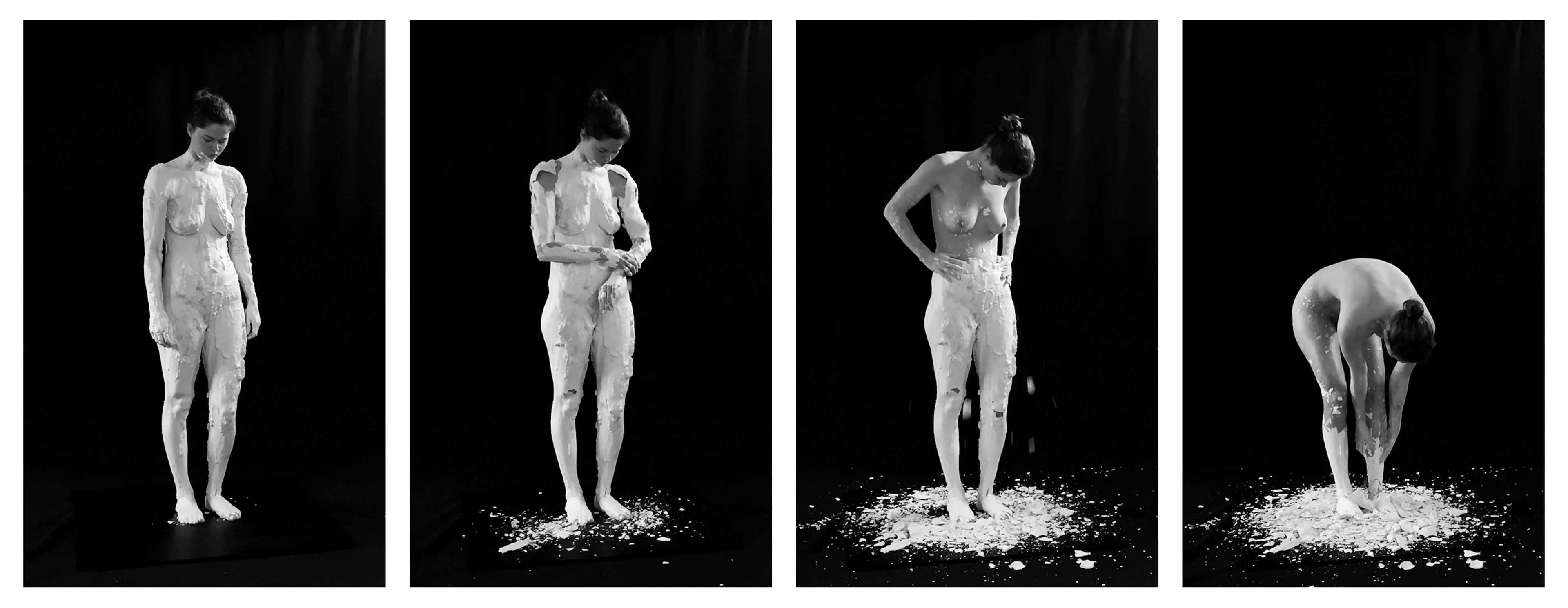 My skin becomes an active participant in an intense conversation based on supply and demand. By forcing my skin to wear and deal with various materials, to stretch my ability and test my physical experience, I push my skin into a dialogue. Like a good conversation: the more uncomfortable and intense it is, the more interesting, haptic and often relieving the outcome, in this case: the final image, video or sculpture.